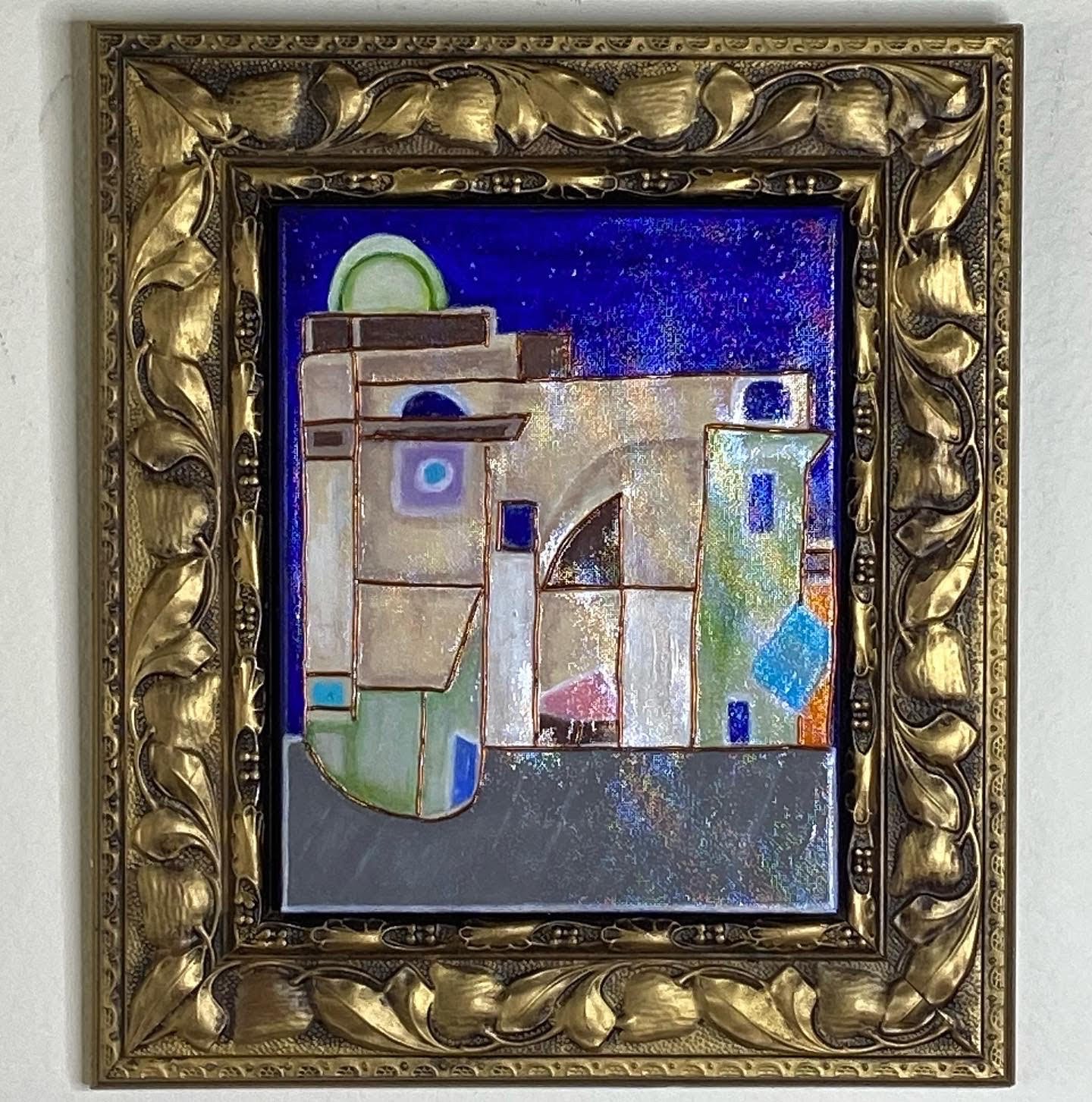 Acrylic paints with a metal grid, and key. High gloss. Signed. Framed ready to hang.
