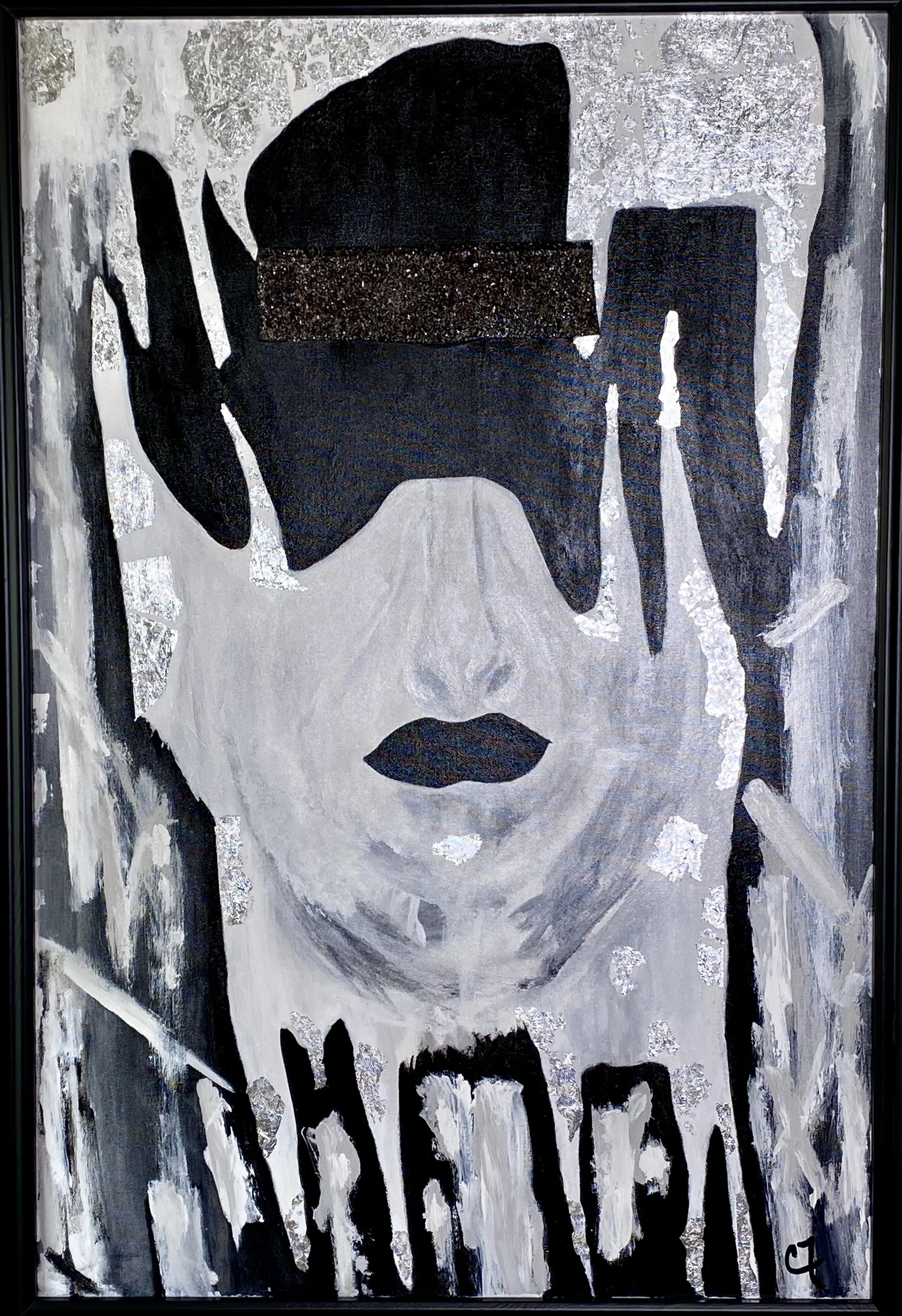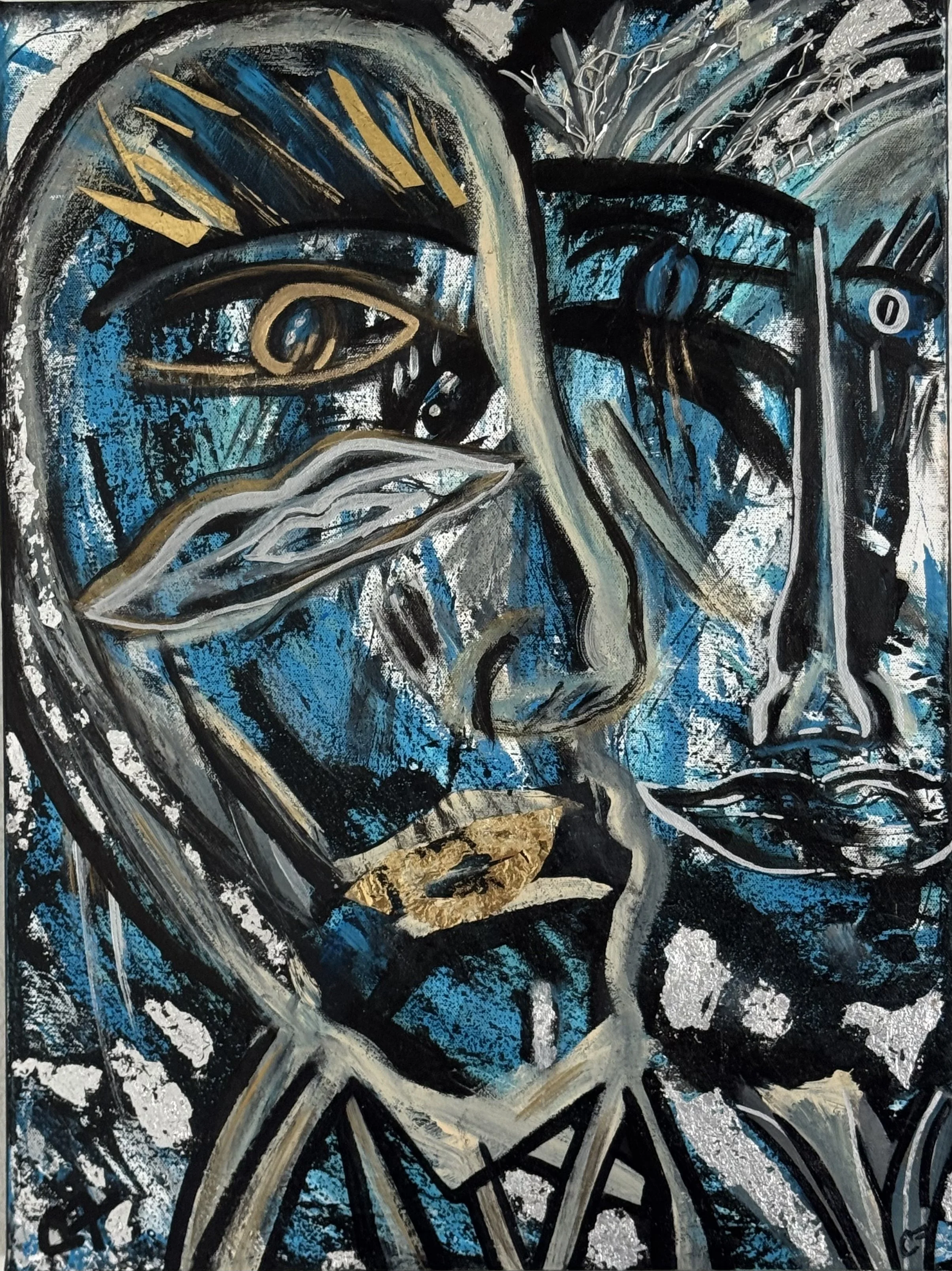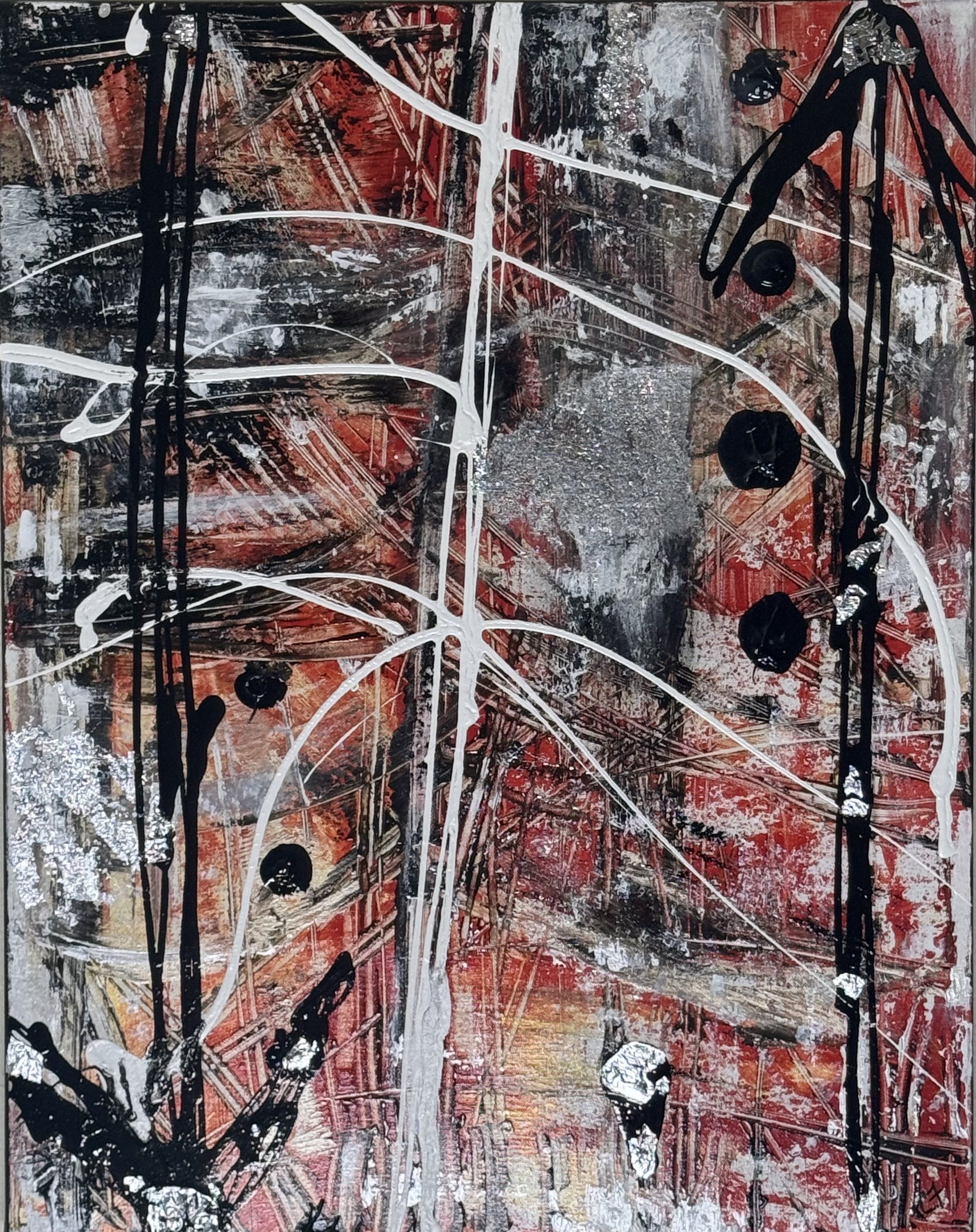 Acrylic paints with silver leaf. 27” X 38” - Framed